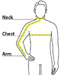| Chest | 32 1/2-36 | 36 1/2-40 | 40 1/2-44 | 44 1/2-48 | 48 1/2-52 | 52 1/2-56 |